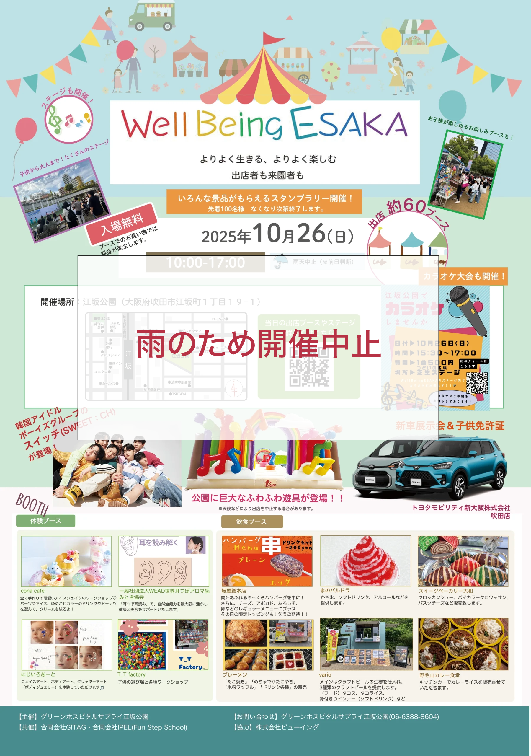 『Well Being』はwell(よい)とbeing(状態)という意味で、江坂公園から江坂地域、ひいては吹田全体をより良い状態になればという思いで開催しています。