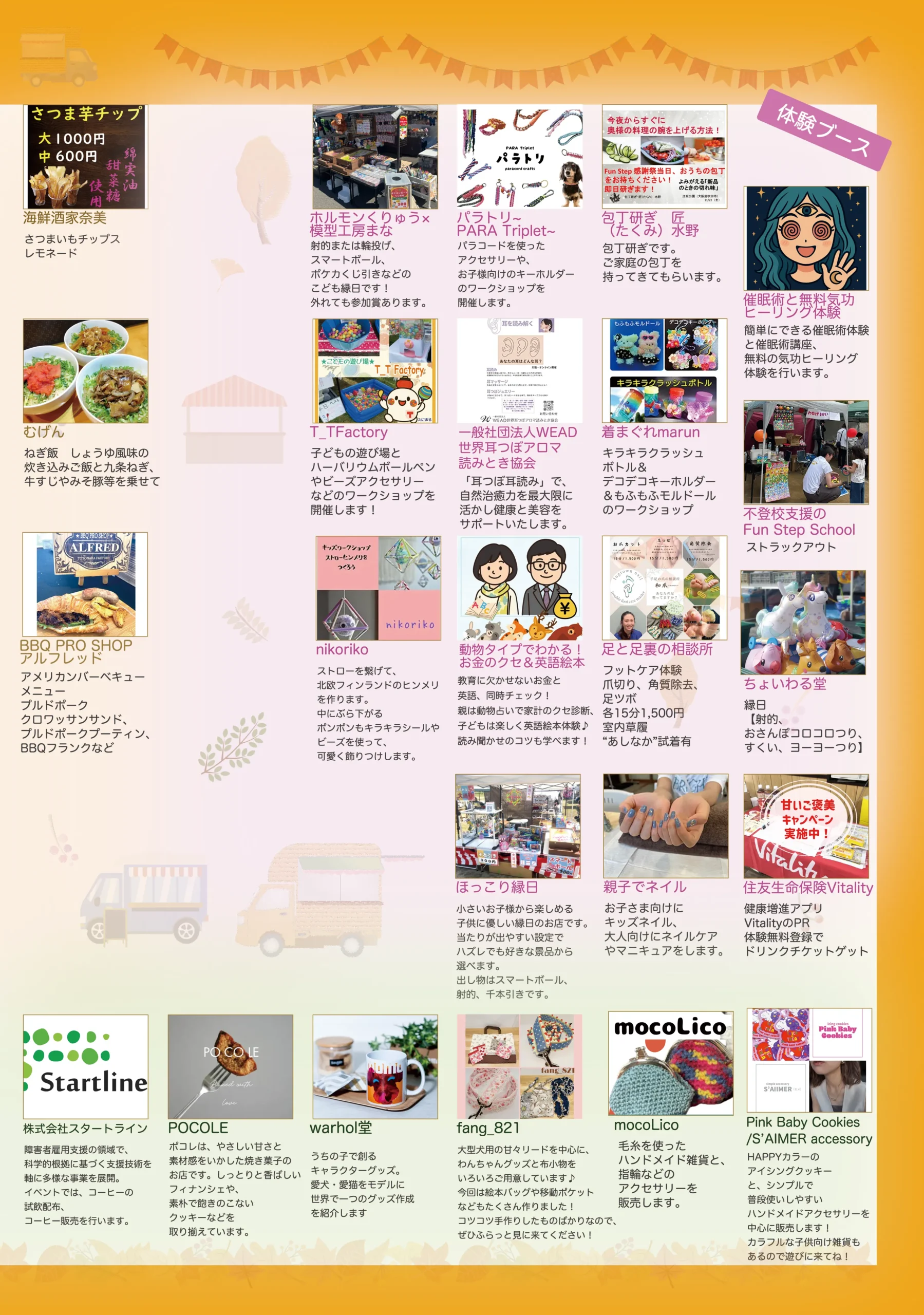 暑い時期を避けて毎月開催しており、コーヒーや料理を味わえるキッチンカーをはじめとした飲食ブースから、