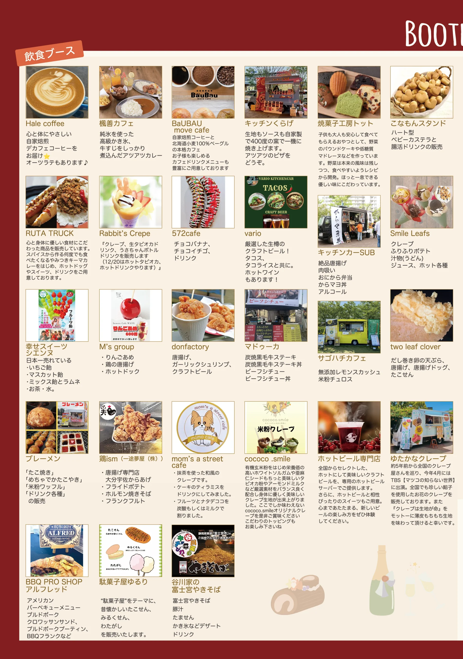 暑い時期を避けて毎月開催しており、コーヒーや料理を味わえるキッチンカーをはじめとした飲食ブースから、